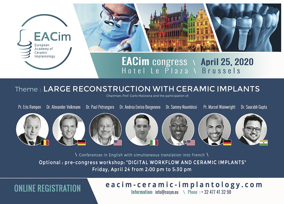 - Prof. ERIC ROMPEN (Belgium) : Respective places of ceramic and metallic implants in a global oral rehabilitation practice in 2020 > learn more