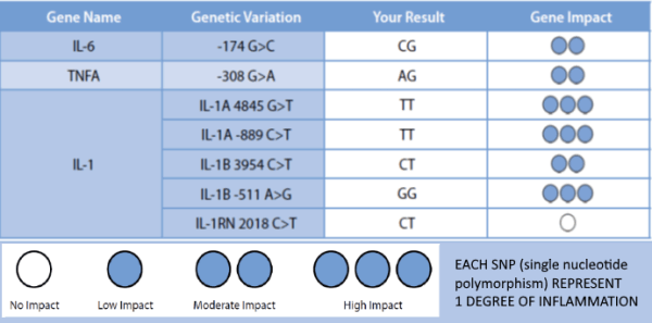 Using genetic testing allows for the allocation of a certain degree of inflammation to the detected combination of alleles.
