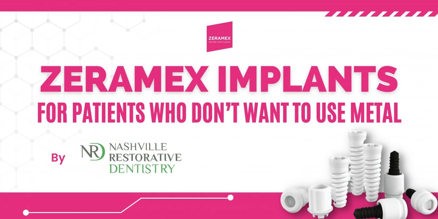 Here at Nashville Restorative Dentistry, we offer zirconia implants as an effective alternative for your traditional dental implants. Traditional dental implants are made using metal, such as titanium and other metal alloys. While these types of implants are a great option, you might have a few reasons why you want to avoid a metal implant. Whether you’re allergic to traditional titanium used in implants, or you just want to avoid exposure to the metals used in traditional implants, we get it! Dr. Jones is your holistic dentist with all the answers – continue reading to find out more about our Zeramex ceramic implants.